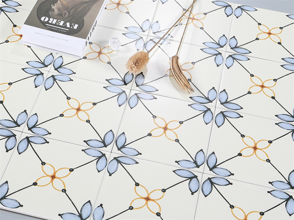 Beige Keramikrustika mit ihren einzigartigen Mustern und lebendigen Farben verkörpern ein reiches kulturelles Erbe.,Wasserdichte keramische Bodenfliesen werden so gefertigt, dass sie ein endloses Muster bilden.Das symbolisiert das ewige Universum und die Ewigkeit des Lebens..