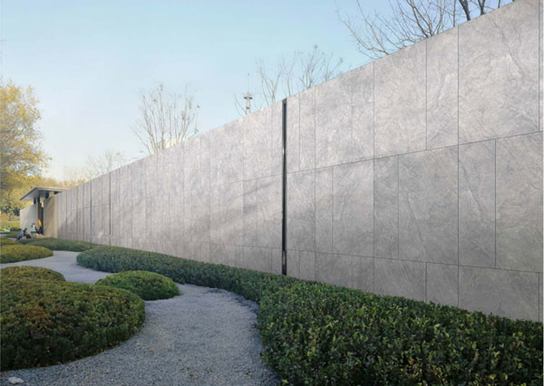 In einem Garten kann die Verwendung einer hellgrauen, dicken Wandplatte eine moderne und stabile Sportatmosphäre schaffen.Diese Farbe der abnutzungsbeständigen Vorhangwandfliesen verleiht einem ein Gefühl der Ruhe und hilft den Sportlern, sich zu konzentrieren und ihr Bestes zu leistenDer rutschfeste VorhangWandfliesenfügt dem schönen Garten eine helle Farbe hinzu.