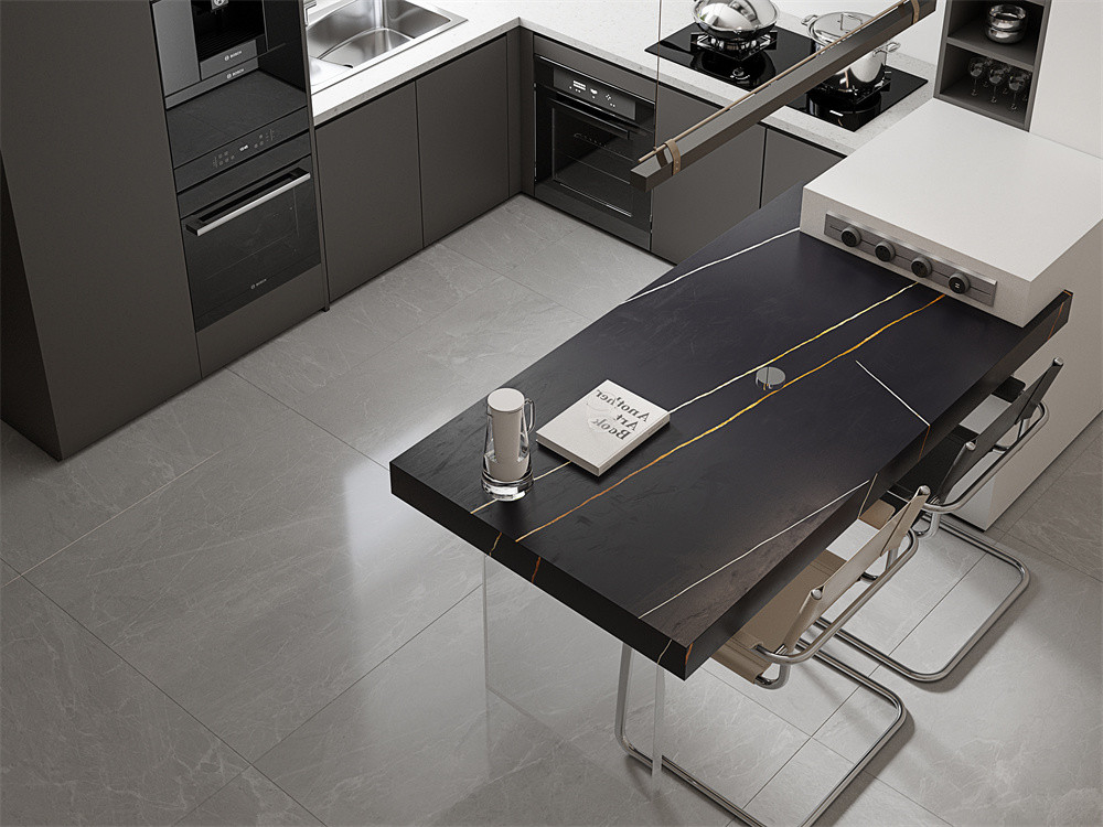 Angenommen, du hast den ganzen Tag hart gearbeitet, und wenn du nach Hause kommst und die Tür des Badezimmers öffnest, wirst du feststellen, daß der Boden und die Hinterwand des Badezimmers aus wunderschönen Sintersteinplatten bestehen.Die einfache Textur der matten Sintersteinplatte und der schwarze Ton verleihen dem Bad eine luxuriöse Atmosphäre.Wenn Sie Ihre Haare waschen, werden Sie feststellen, dass Ihre Stimmung glücklich wird, weil Sie Stress loslassen und Ihre Probleme in der guten Umgebung vergessen können, die durch die langlebige gesinterte Steinplatte geschaffen wurde.Es ist erwähnenswert, dass die Dekoration des Badezimmers mit großen Platten kann ein schönes Leben genießen.