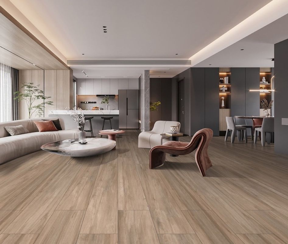 Wenn Sie sich für braune Holzporzellanstreifen entscheiden, wählen Sie einen Lebensstil, der die Natur umfasst und die Lebensqualität schätzt.Sie kommen der Natur näher und genießen die Vorteile moderner Materialien.Diese Wahl spiegelt ein Engagement für Nachhaltigkeit und ästhetische Attraktivität wider und ist somit eine ausgezeichnete Option für diejenigen, die sowohl Stil als auch Substanz in ihren Wohnräumen suchen.Verschleißbeständige Holzporzellanstreifen vereinen die natürliche Schönheit von Holzkorn mit der Langlebigkeit und Wartungsfreundlichkeit von Porzellan, die eine perfekte Mischung aus Form und Funktion bietet.
